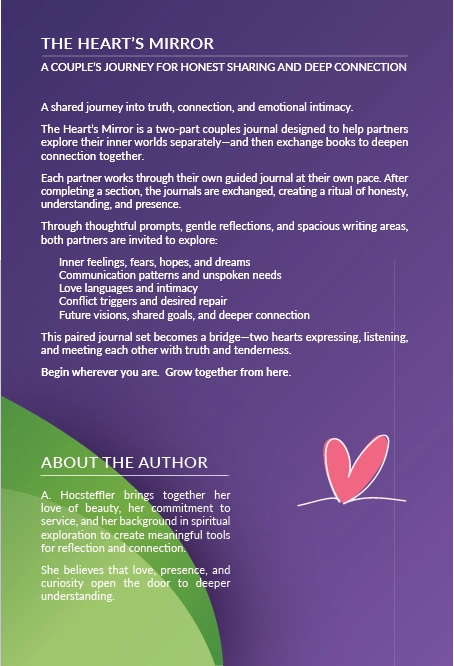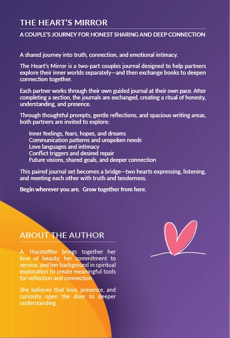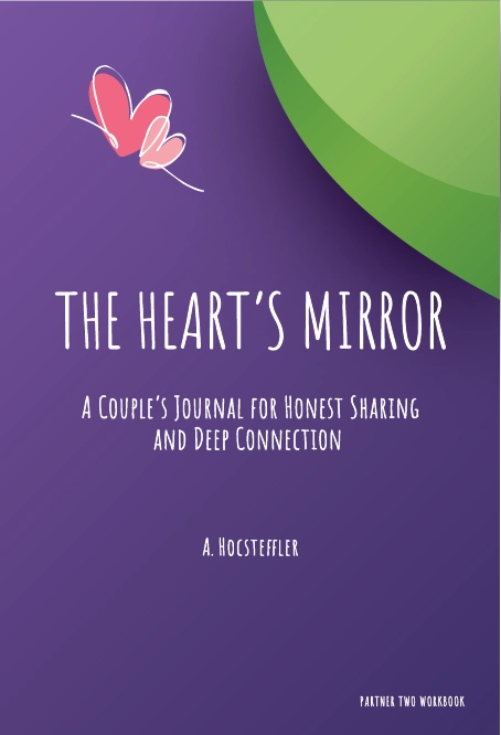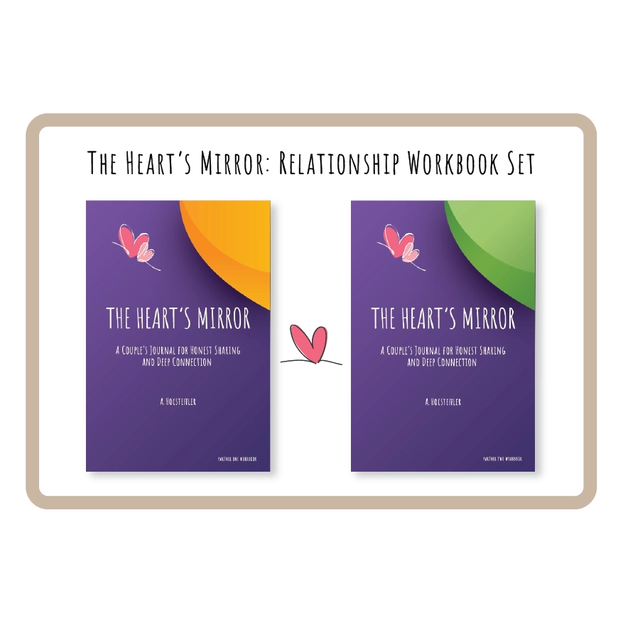 The Heart's Mirror is a two-part couples journal designed to help partners explore their inner worlds separately—and then exchange books to deepen connection together.